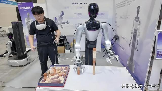 展会核心亮点当属零次方今年5月底全新推出的轮臂人形机器人ZERITH H1,该产品采用“拟人”结构,搭配7轴高精度机械臂,臂展达1.8m,下可触达地面,上至2m,从而实现全身超大灵活操作空间。
